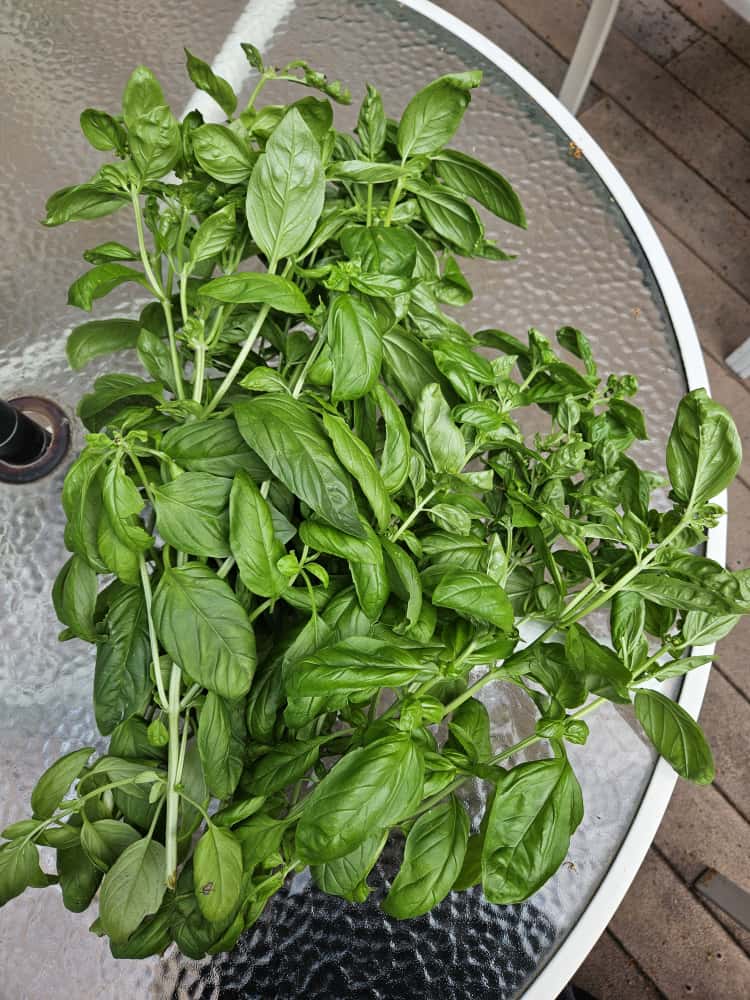 With no meals to prepare today, I have time to breathe in the scent of basil and harvest at leisure. Here’s how I do it: