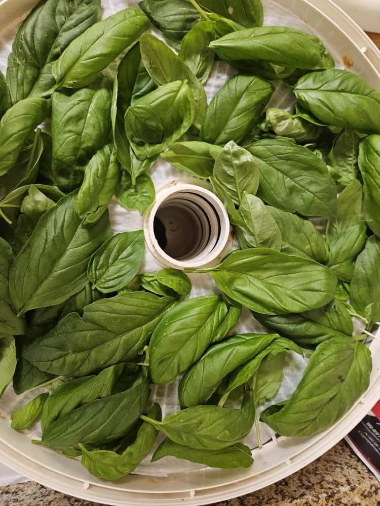 - To dry, lay each leaf in a single layer on dehydrator racks. I use a dehydrator and dry the leaves until they crumble. Then I crush them in a Ziploc bag and store them in airtight jars—basil flakes for the win! They give a huge flavor boost to Passover dishes.